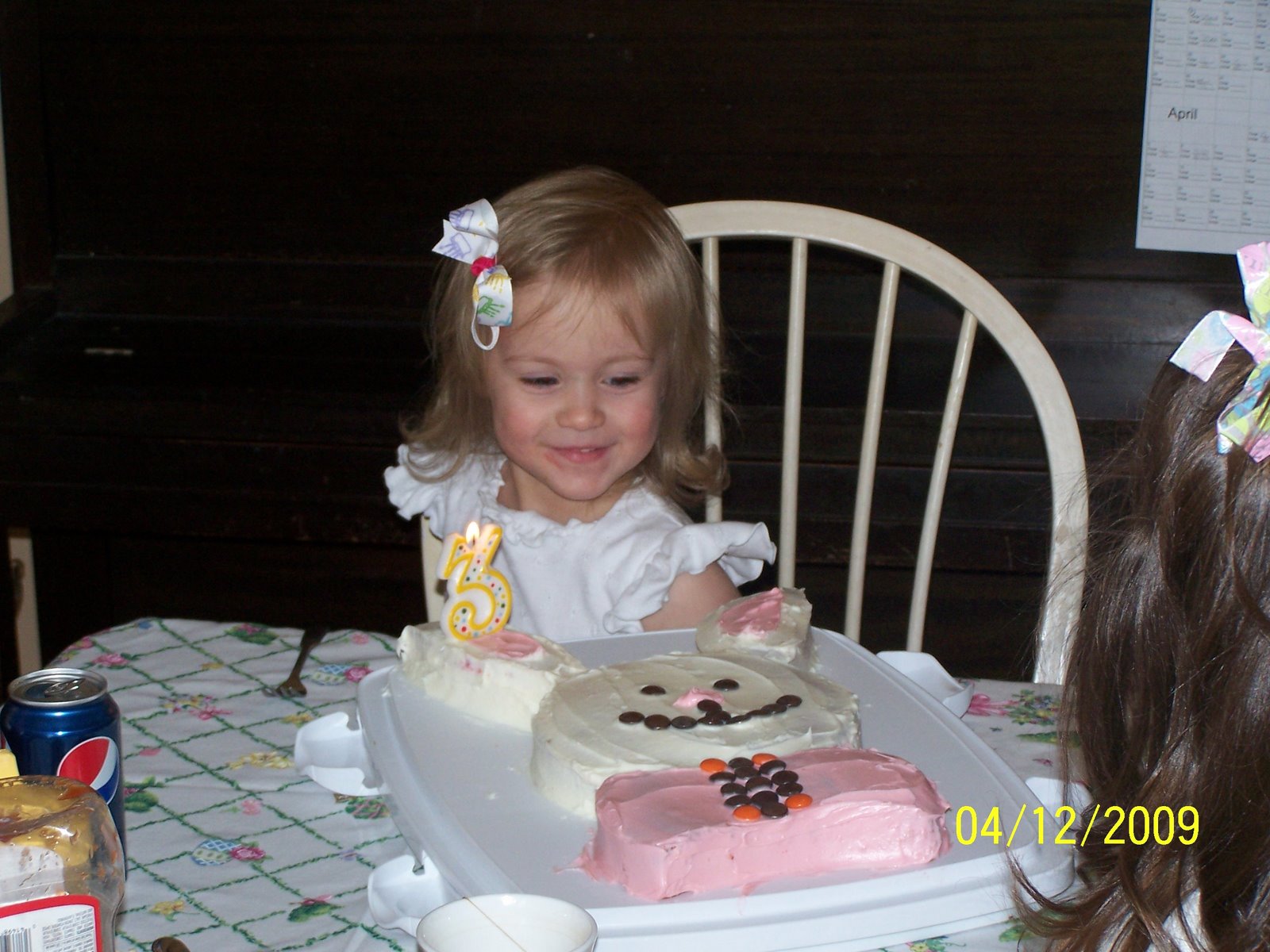 About 11:00 AM she dressed for her party, and posed with her cake.
