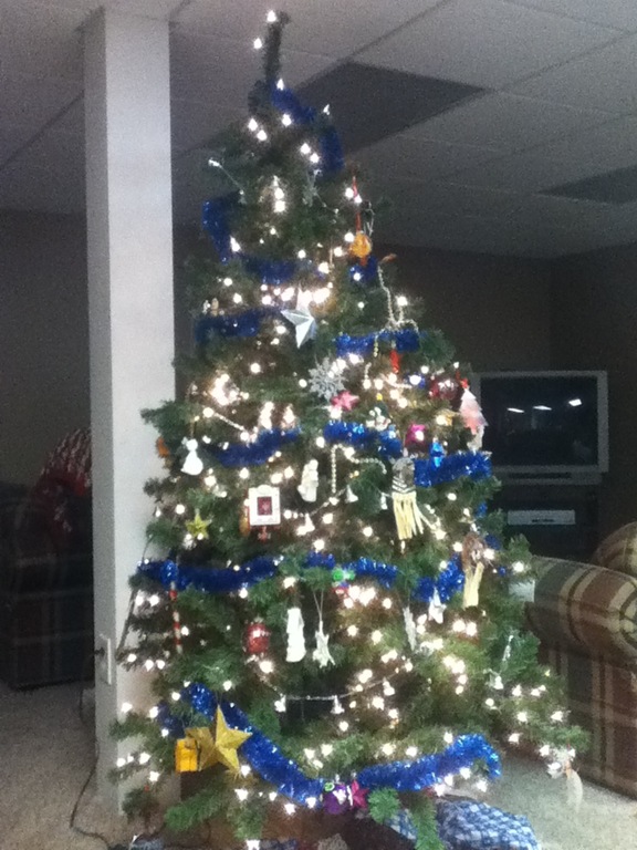 The kids put the second tree up in the basement, too. Again, I put the lights and the garland on and we opted to wait until Monday to decorate that tree. Actually – they did that one themselves, too.